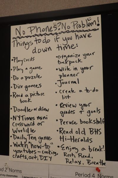 During downtime in class, it has been an adjustment for students to find things to do. AVID teacher Mrs. Sletten has added a ‘No Phone No Problem’ station in the back of the classroom.